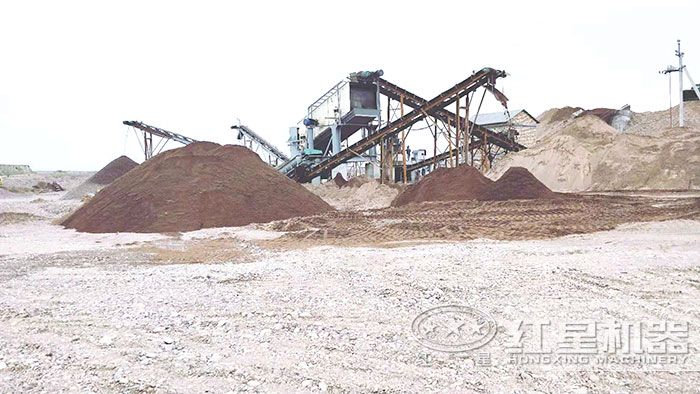 紅星機(jī)器為用戶配置的移動(dòng)制砂機(jī)作業(yè)現(xiàn)場(chǎng)
